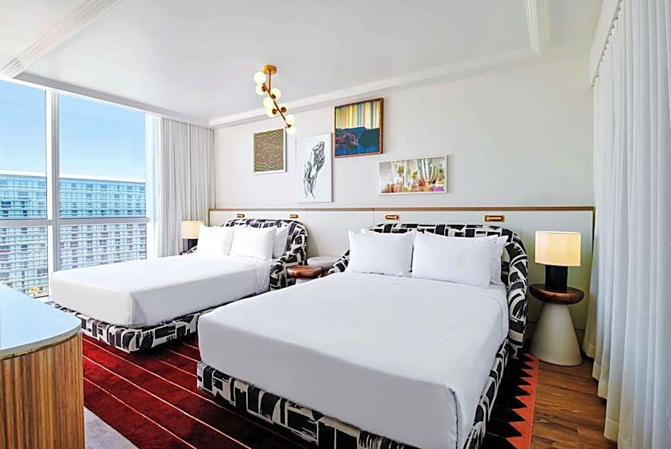 With a view of Las Vegas Strip, this room features a mini-bar, 2 ergonomically designed queen-sized beds and free WiFi. Doors separate the sleeping from the dressing area. Red Flower toiletries and a large bathroom with separate bath and shower are included.